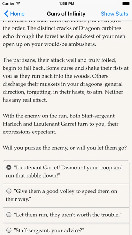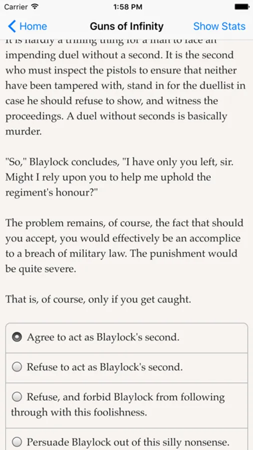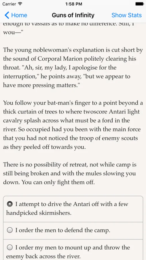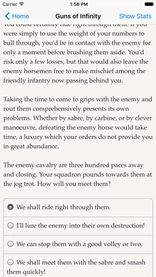 "Guns of Infinity" is a 440,000 word interactive novel by Paul Wang, author of "Sabres of Infinity," "Mecha Ace," and "The Hero of Kendrickstone." Your choices control the story. It's entirely text-based—without graphics or sound effects—and fueled by the vast, unstoppable power of your imagination.