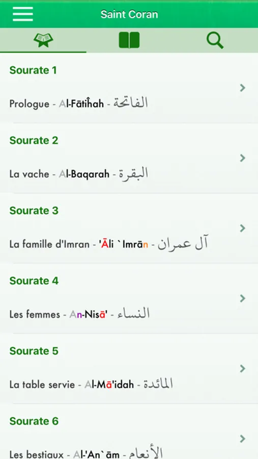 - 114 sourates du Saint Coran