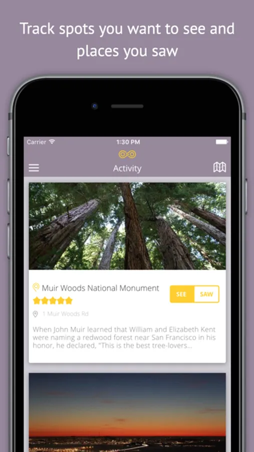 • Organize and track places you've already seen to share or review later.
