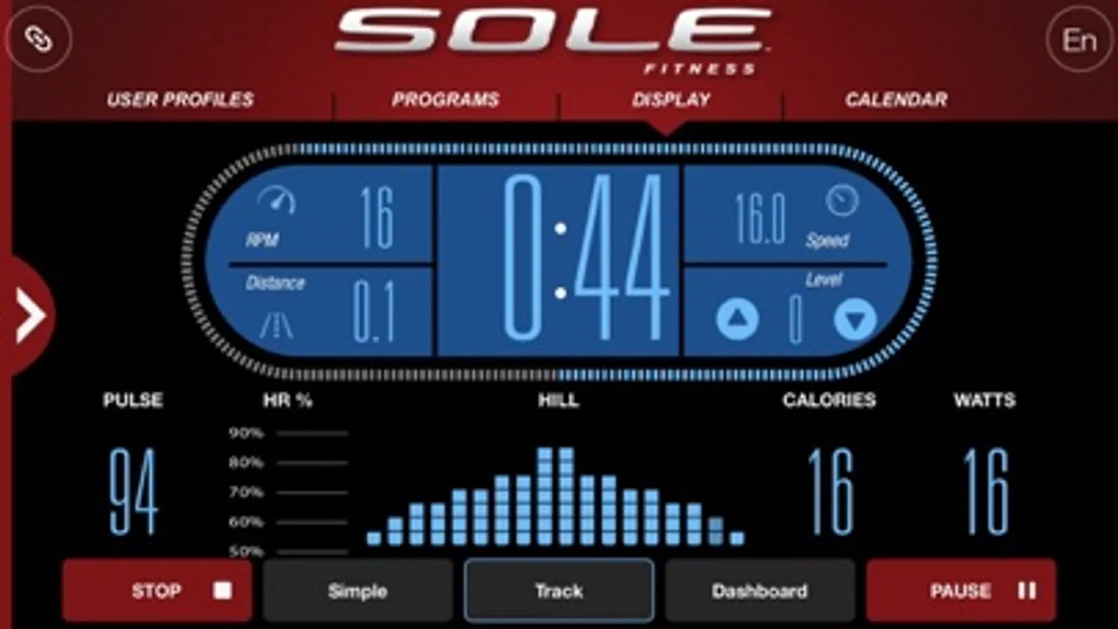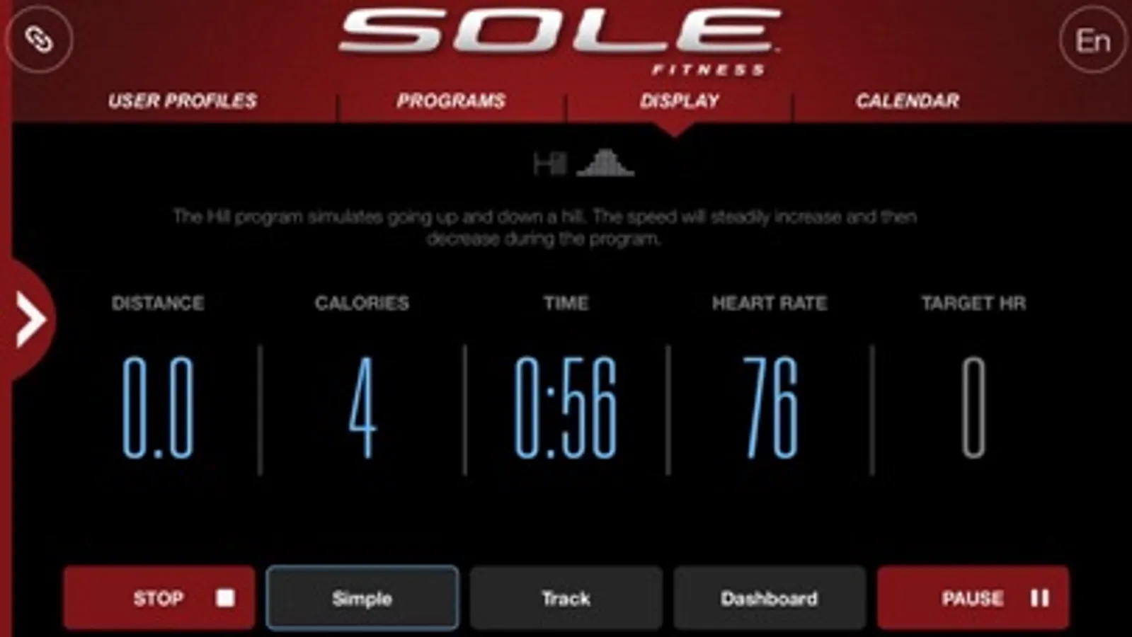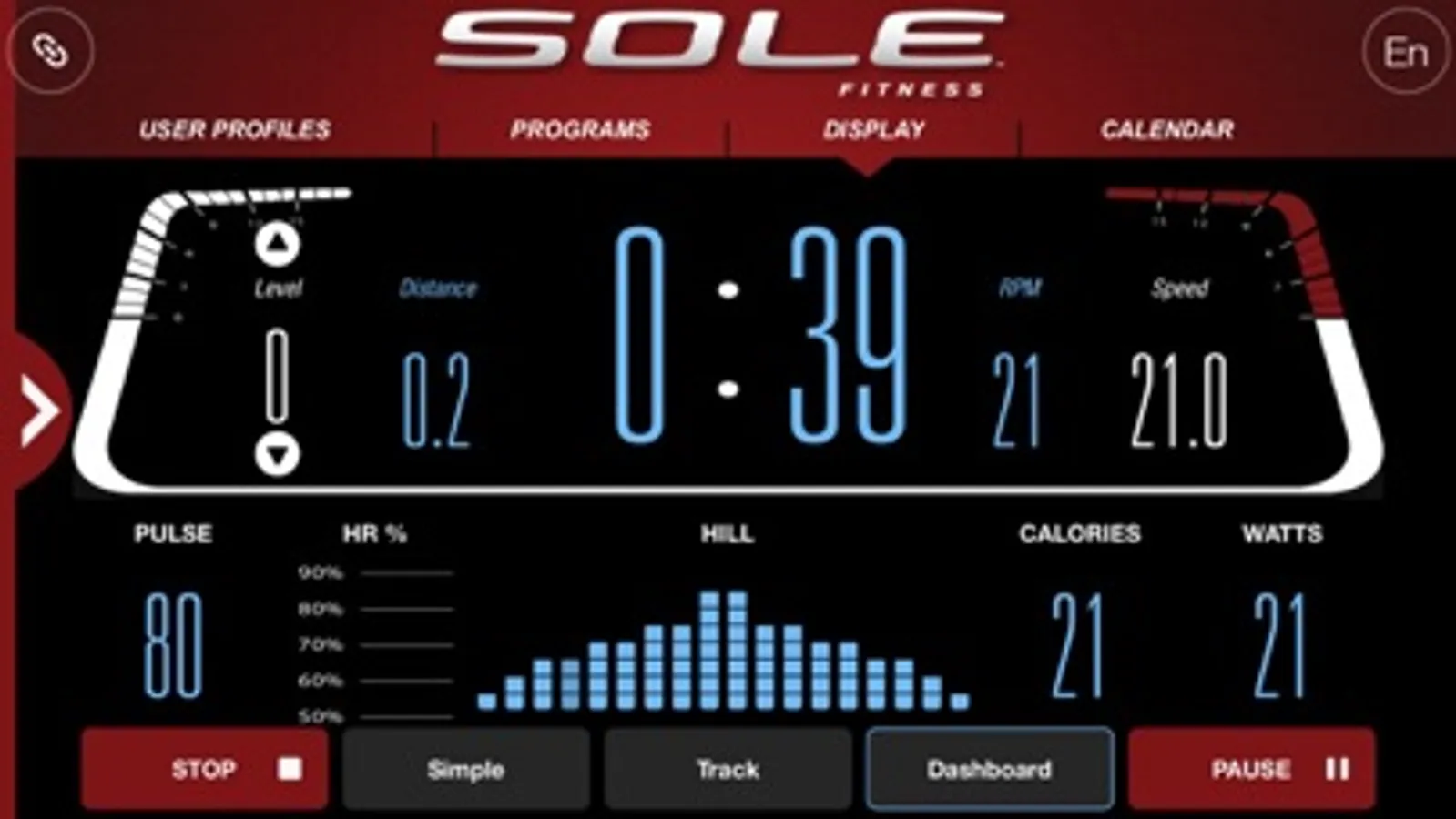 SOLE Fitness App connects to your Treadmill, Bike or Elliptical via Bluetooth. You can view current workout data in three different Display screens on your device. Easily switch back and forth from the workout display view to internet/social media/email sites via icons on the display screen. When your workout is finished, the data is automatically uploaded to your personal calendar for future reference.