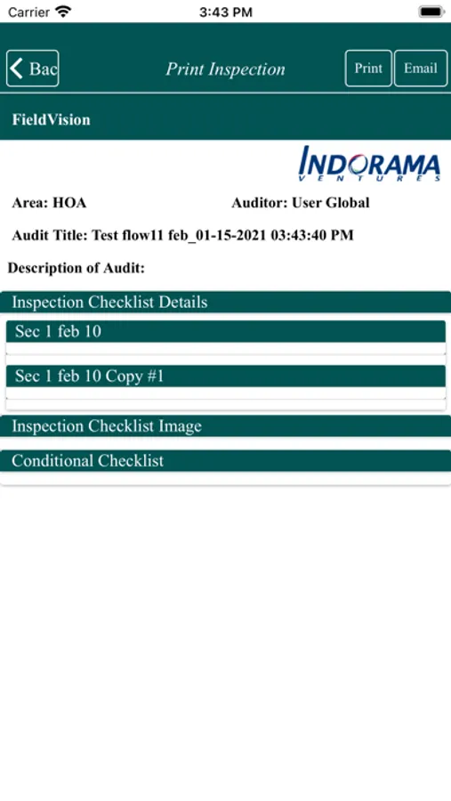 - Create Inspections and Audits offline and upload data when internet connection is available.