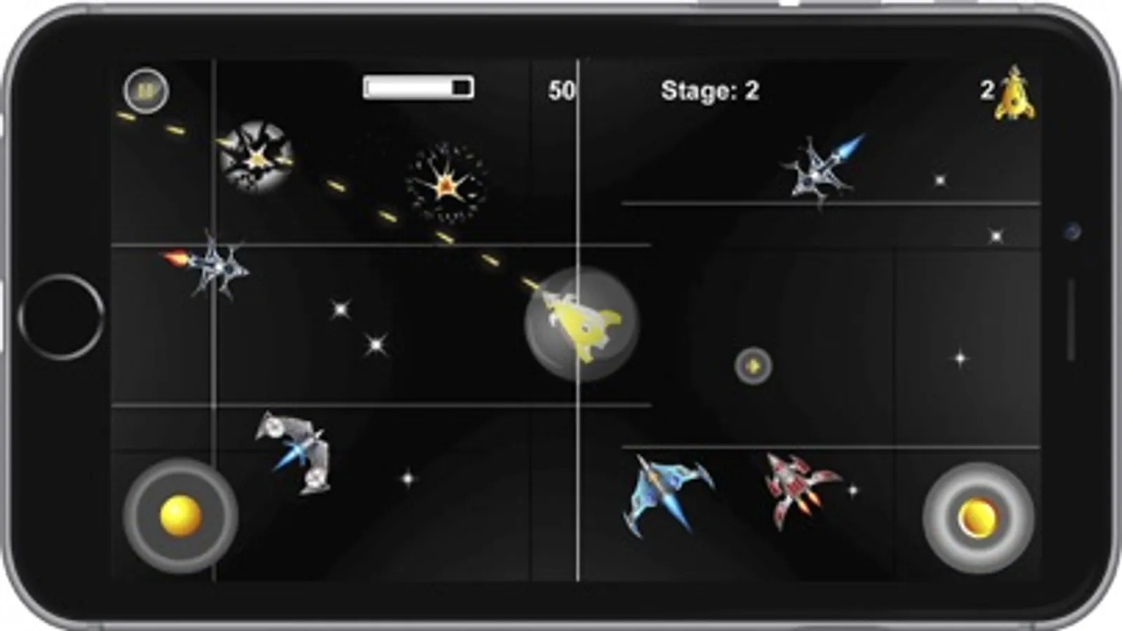 Take your attackers out one by one with a satisfying explosion! Simple controls allow you to pivot and fire with the press of a thumb. Work through each stage to earn more points and prove yourself to be the champion of outer space!