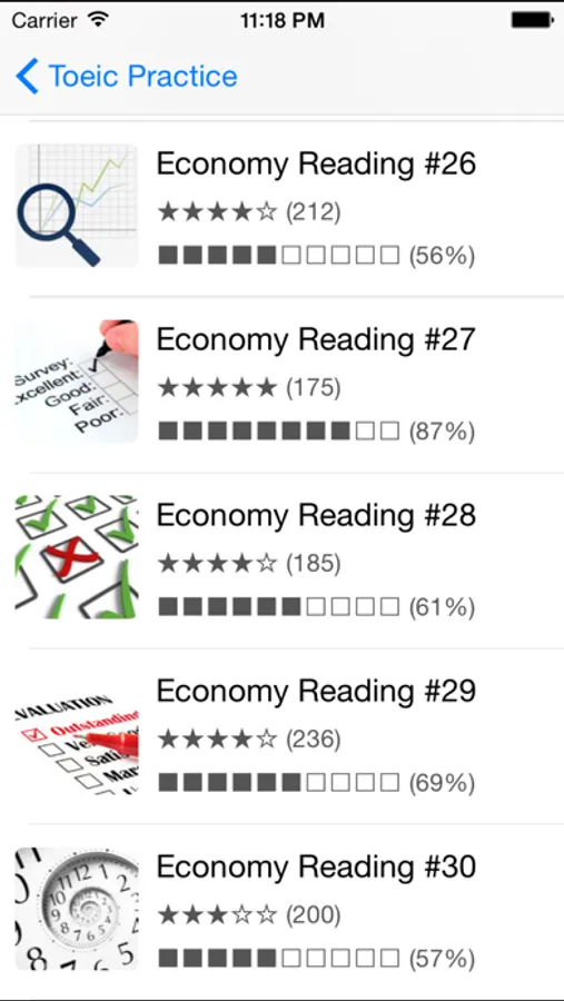 - App contains 30 actual TOEIC tests of part 5 and part 6.