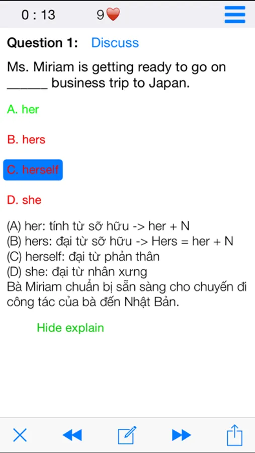 - App provides questions and answers with explanations for each question, help students understand and grasp knowledge of grammar.