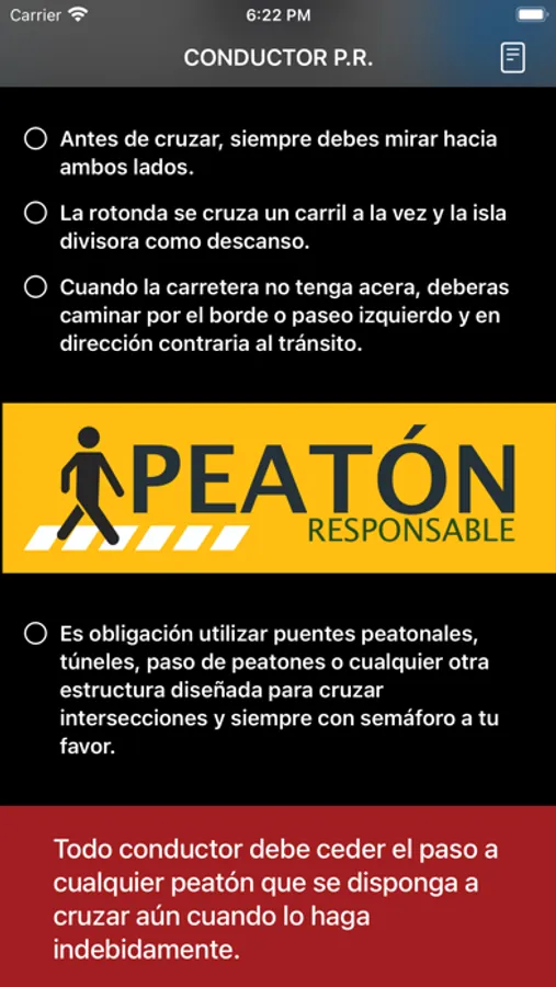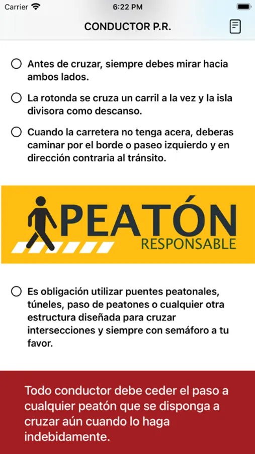 Examen teórico y guía interactiva dedicada al Conductor Aprendiz de Puerto Rico. Este manual ha sido diseñado para que de una forma simple, rápida y eficiente, pueda aprender sobre las Practicas y Reglamentos de la Ley de Vehículos y Transito en Puerto Rico.