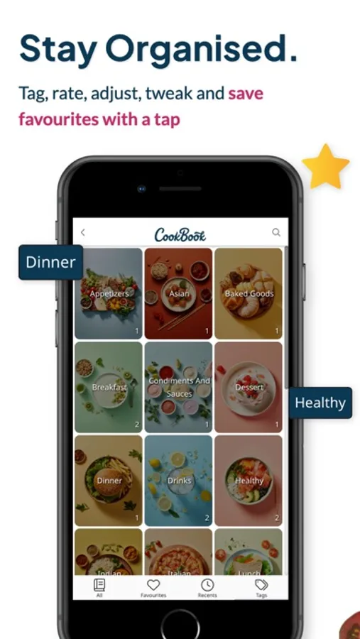 Rate, track, pin, tag, and favourite your recipes. Your CookBook is personalised & organised.