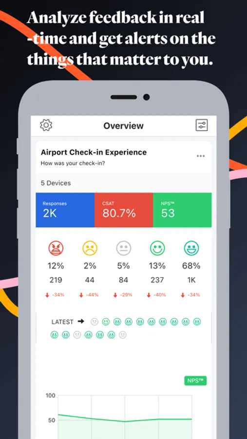 Set up instant push notifications and email alerts to act on feedback and address issues before they escalate. Discover continuous insights for short term and long term action planning and keep your teams informed, motivated and data-driven.