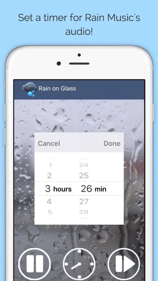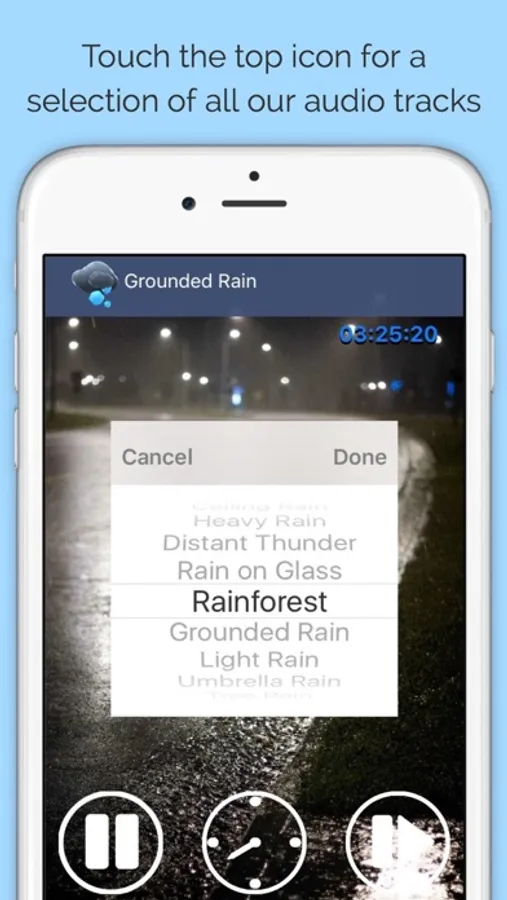 Whether you have trouble falling asleep or you simply need relaxing sounds for meditation, allow this free rain app to soothe you with the beautiful sounds of rain. Enjoy the peaceful tranquility that high quality rain music has to offer. If you want to sleep better or purely benefit from a healthy body and mind, pick one of several beautiful background images and select your favorite style of rain, whether it be light rain, heavy rain, or even a thunderstorm.