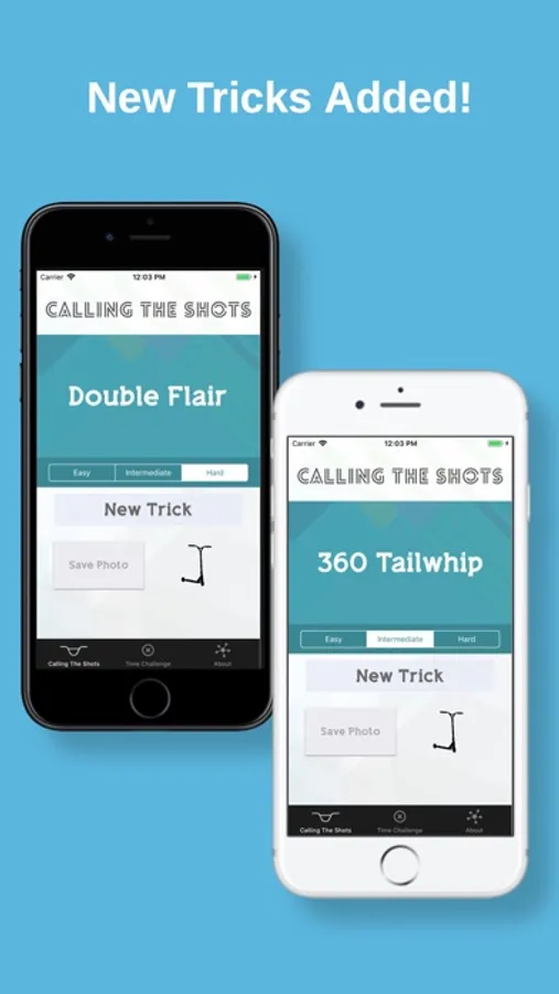The first tab will throw tricks at random depending on the difficulty. We have implemented three difficulties: