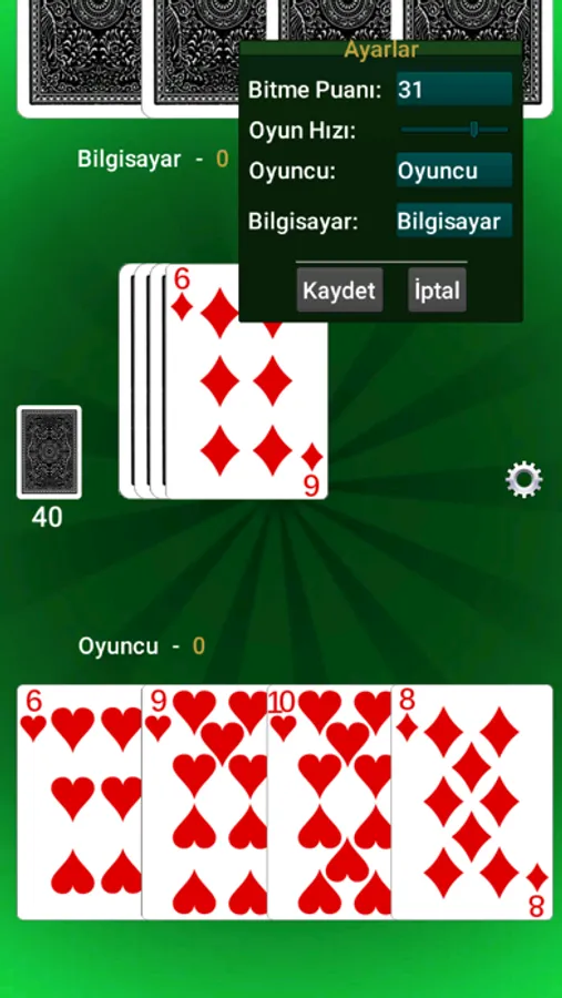 Bilgisayara karşı oynayarak zaman geçireceğiniz basit bir oyun. Ayarlar kısmından oyunun bitme puanı, hızı, oyuncuların isimlerini değiştirebilirsiniz.