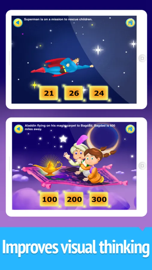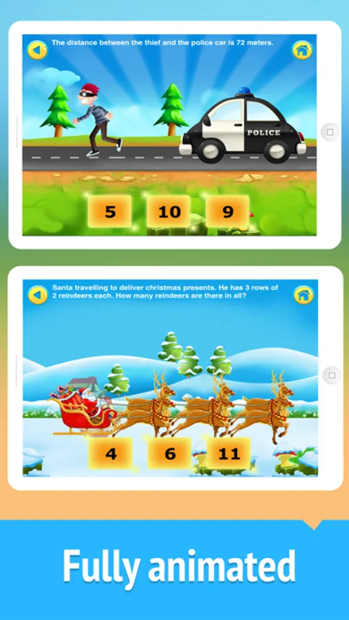 This app exactly does that. It animates the texts in the word problems so that kids can relate both. To make it more interesting for kids the app includes music, sounds and games. Practicing this visualisation technique will make them love word problems and will result in overall improvement in analytical skills.