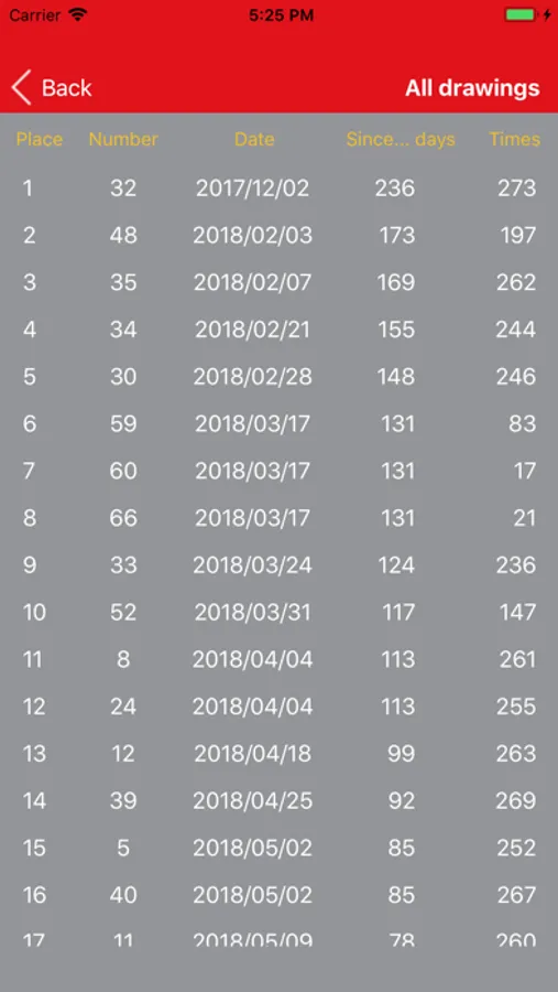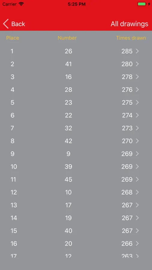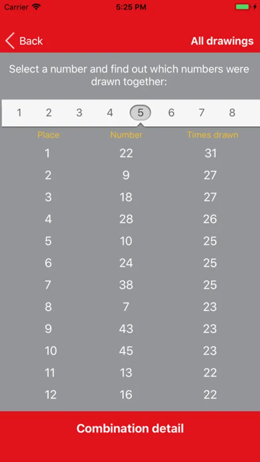 You can analyze the ranking of numbers, how many times a number was drawn and what is the most drawn number. Also see when was the last time a number was drawn.