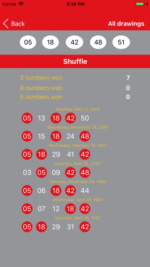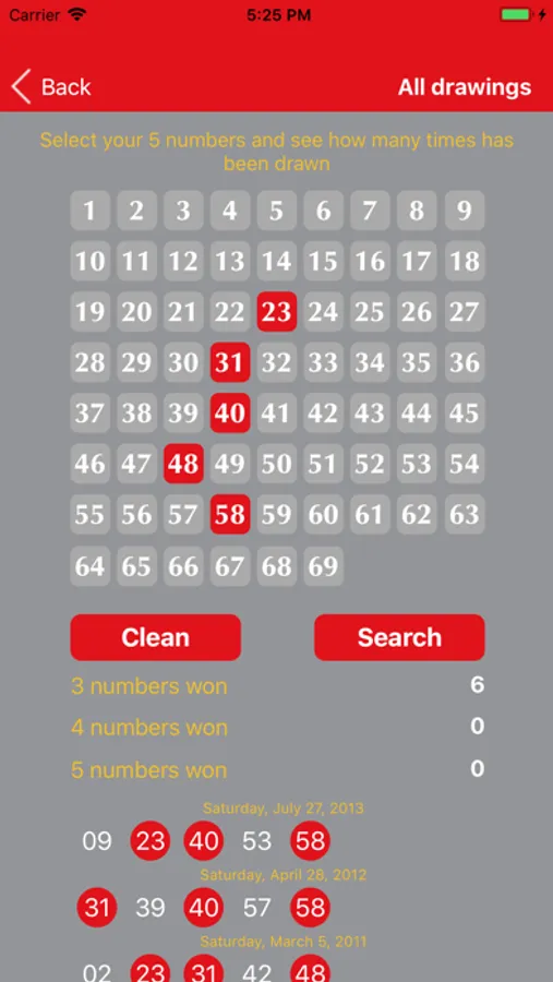 You can input your own numbers and see how many times this combination of numbers was drawn in the past.