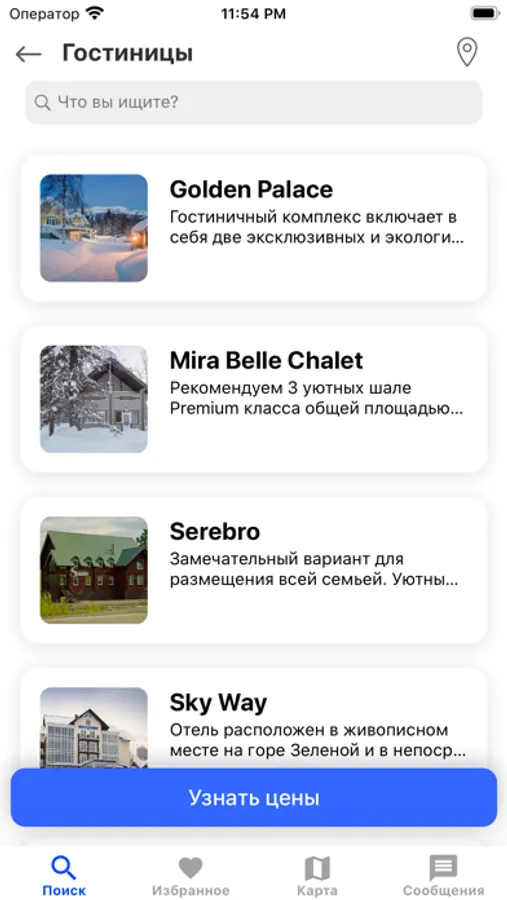 - Поиск и Offline доступ: вы сможете легко найти любую услугу или объект на горе, вся информация доступна без доступа в интернет и обновляется при выходе в сеть