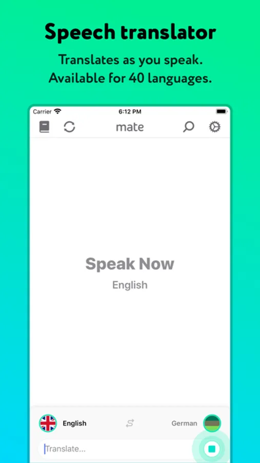 - iMessage App. Write messages in your language, Mate will translate them on the fly and send in the recipient's language. Or vice versa.