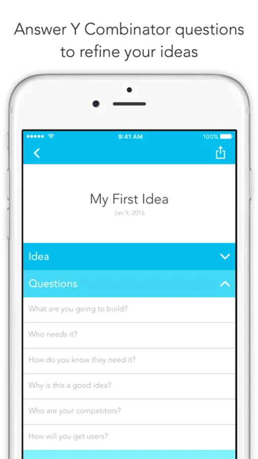 Visions is a fast, beautiful, and fun way to capture all your ideas and refine them by answering Y Combinator questions. These questions are from Y Combinator’s “How to Start a Startup” course at Stanford viewed by thousands of people.