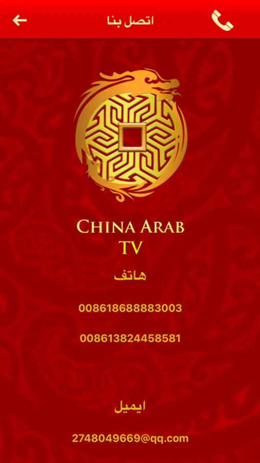 China Arab TV (ChatTV) is the first Arabic channel broadcasting from China to Middle East through NileSat Frequency:11602H .