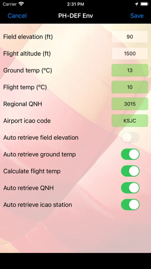 In some cases you may not want all options selected. If you are for example preparing your flight at noon you may want to enter the ground temperature manually because it will differ when you are flying in the evening.