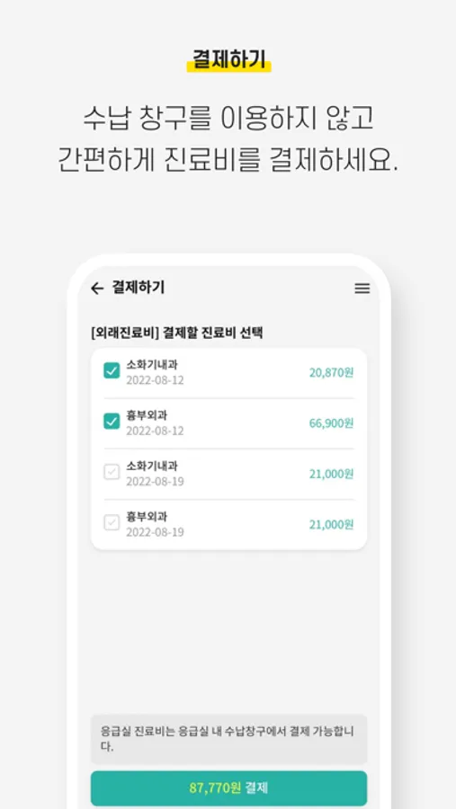 5. 결제하기 : 수납 창구를 이용하지 않고 간편하게 진료비를 결제하세요.