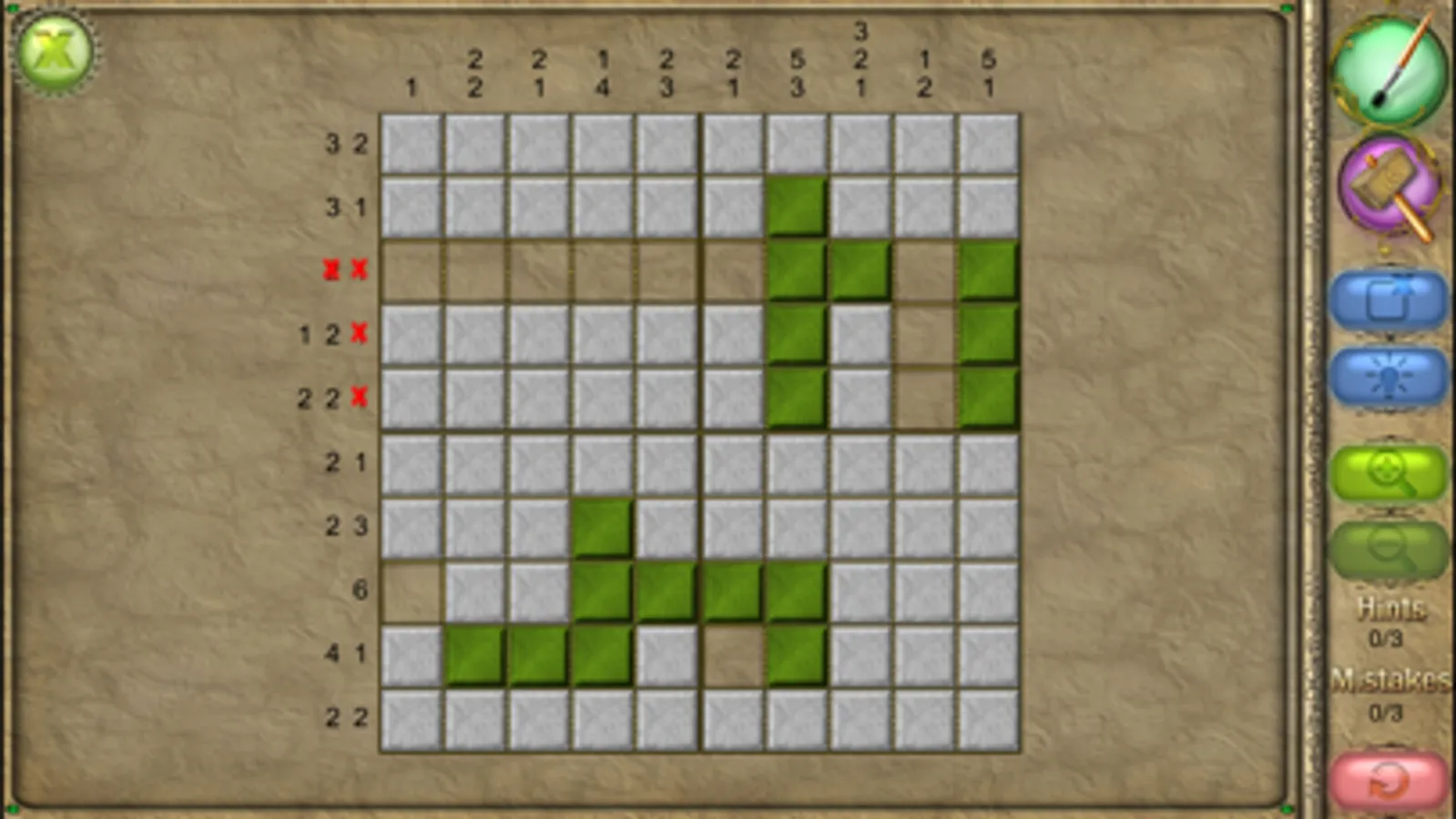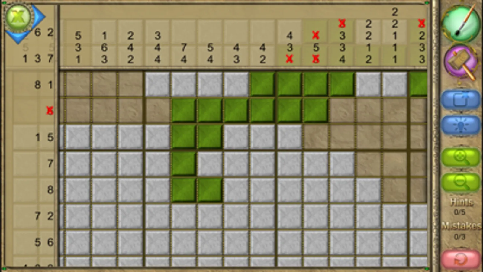 An old Japanese logic puzzle takes on a new look with FlipPix Art! Touch tiles to paint them or break them to form colorful components of paintings. The goal is to use logic to determine which tiles should be filled to reveal a hidden picture.
