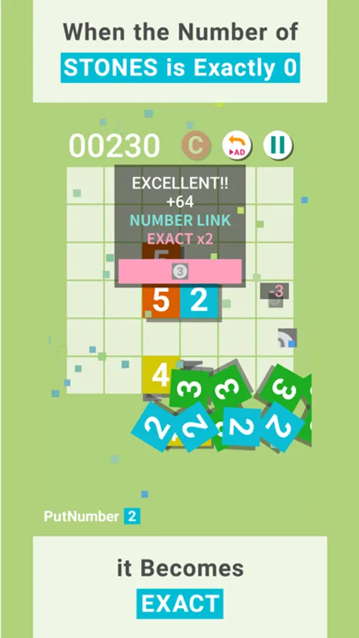• If you erase the stone by lowering the number written on it exactly to 0, you will get the Exact (JUST) point bonus!