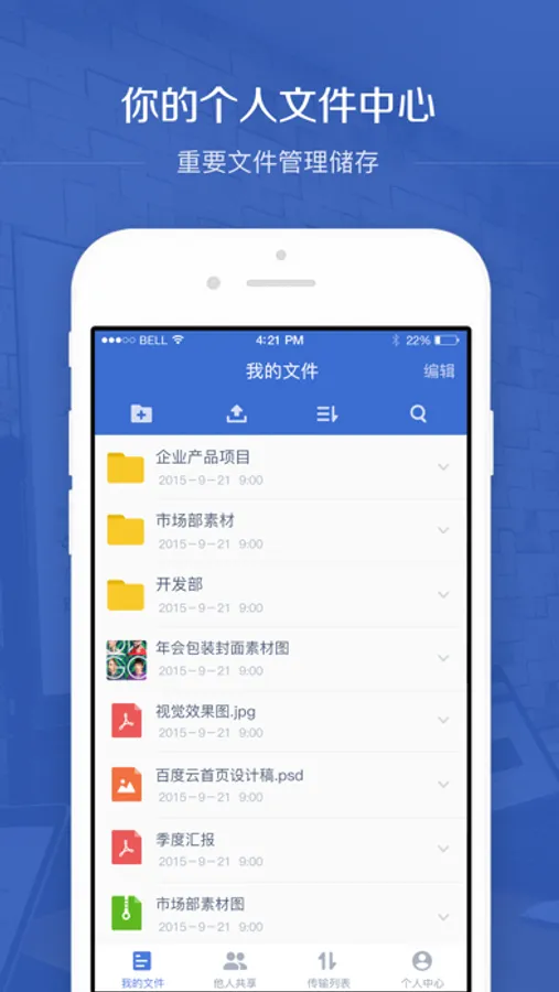 c) 百度企业网盘,不仅提供功能强大完善的Web端和PC端,同时提供iPhone、Android等移动端产品,随时随地,轻松同步最新文件。