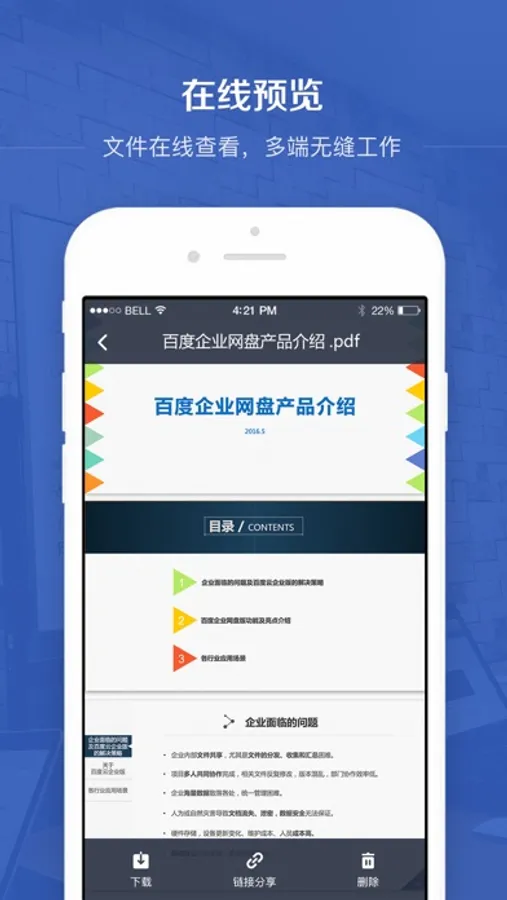 百度企业网盘协同办公,高效安全。最好用的团队协同工具,让团队随时随地一起工作。全新的企业协同应用,简单、快速、安全。美好生活从百度企业网盘开始。