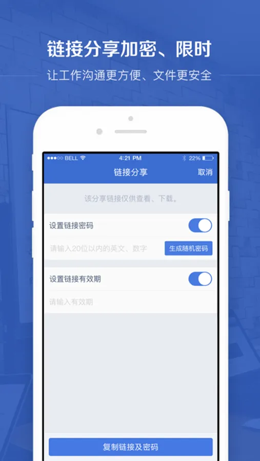 支持对文件进行手动或自动设置密码及有效期,便捷对外分享。