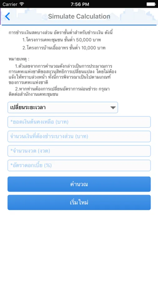 หมายเหตุ : ฟังก์ชั่นที่ 1. – 4. สามารถใช้ได้สำหรับผู้ใช้บริการที่เป็นคู่สัญญากับการเคหะแห่งชาติ