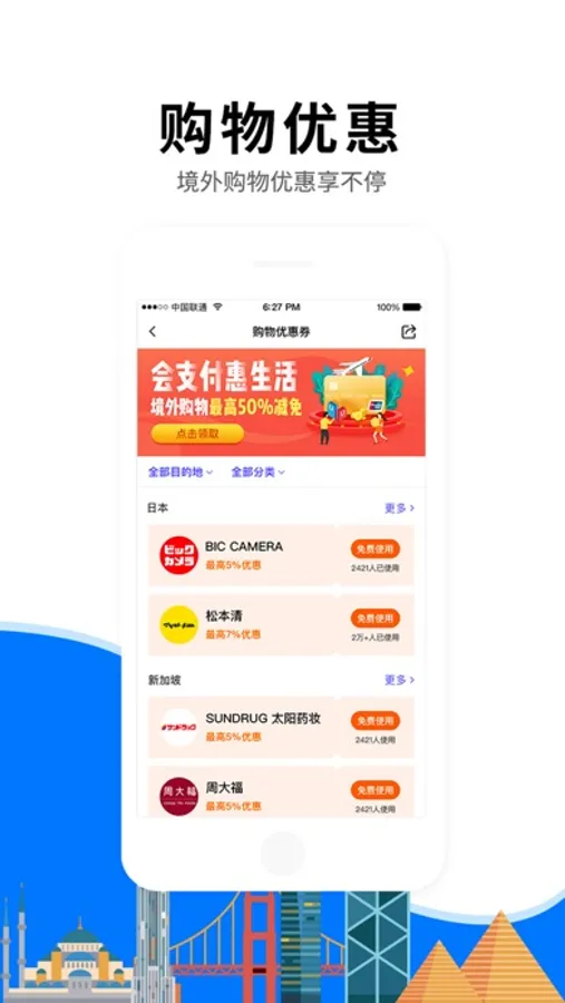 汇集12000+免税优惠、400+热门商铺、50%折扣独家优惠券,购物更省钱;