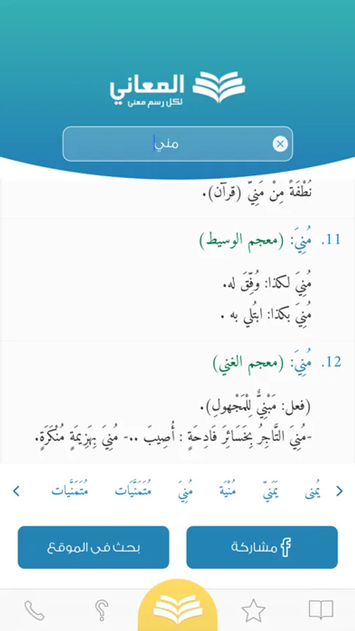 Almaany.com Arabic to Arabic dictionary for offline use. The application contains summarized results. with active internet connections, search can be broadband to online website.