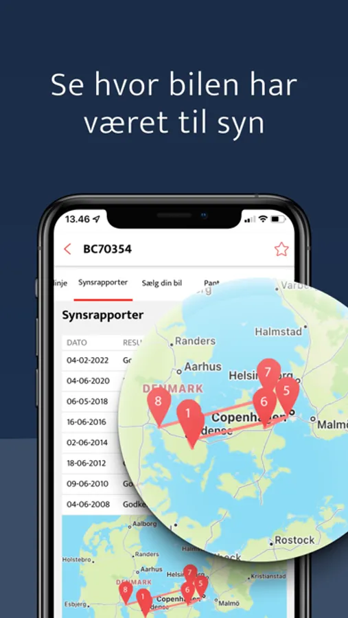 Du kan gemme de biler du slår op, så du let kan finde oplysningerne om dine biler frem igen. Vi giver dig også mulighed for at blive mindet om syn af dine biler.