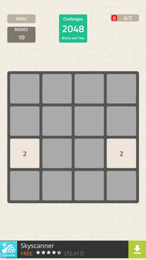 2048 Block and Tiles is played on a 4×4 grid, with numbered tiles that slide smoothly when a player moves them by swiping up, down, left or right. Every turn, a new tile will randomly appear in an empty spot on the board with a value of either 2 or 4. Tiles slide as far as possible in the chosen direction until they are stopped by either another tile or the edge of the grid. If two tiles of the same number collide while moving, they will merge into a tile with the total value of the two tiles that collided and the player's score will increase accordingly. The resulting tile cannot merge with another tile again in the same move. Higher-scoring tiles emit a soft glow. If player make a tile with value 2048 will become winner. A player can see 5 best score on a particular device that he/she is playing the game. In 2048 there is another type game named 'Challenges'. Player will start from level 1. Higher level will become open to player if corresponding previous level has been cleared by player.