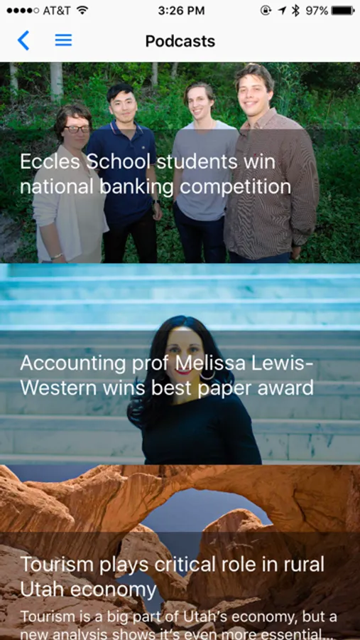 The Eccles School News app includes recent articles, events, videos, podcasts, press releases and in the news content curated by the school’s marketing + communications team. Articles feature the activities and accomplishments of our students and programs, and focus on applied learning, a central component of the Eccles experience.