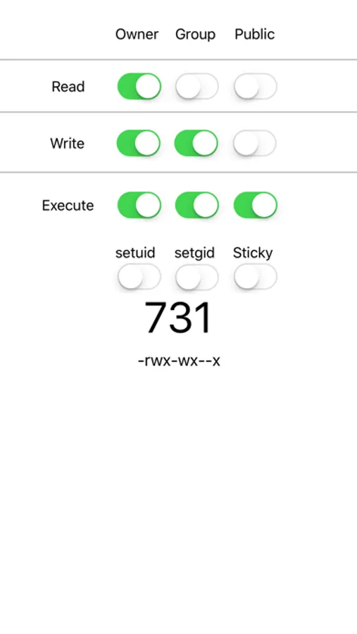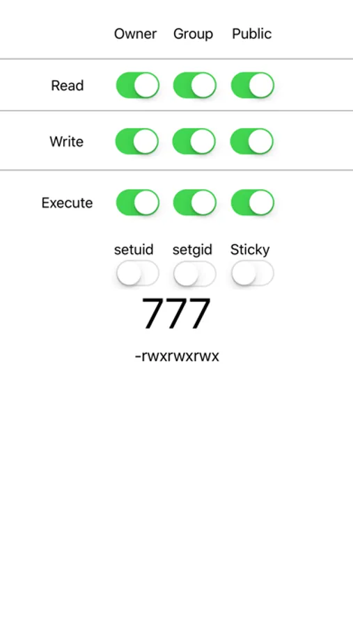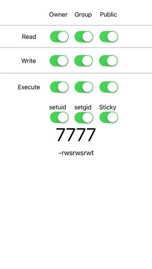 Easily calculate permissions in the numerical and symbolic formats. You can even calculate permissions for bits setuid, setgid, and Sticky.