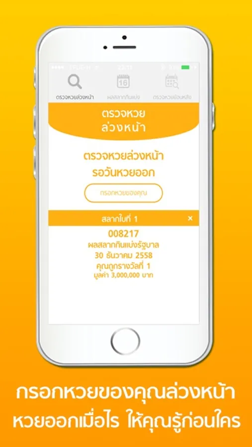 แอพตรวจหวยล่วงหน้า เป็นแอพสำหรับใช้ตรวจหวย สลากกินแบ่งรัฐบาล ที่จะออกเดือนละ 2 งวด สามารถตรวจย้อนหลังได้หลายปี และสามารถตรวจปัจจุบันได้แบบ เรียลไทม์