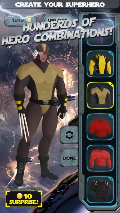 Start by giving your hero an identity and then an awesome costume! It doesn't end there because you'll also decide his super powers and abilities for battle! When finished, share with your friends!