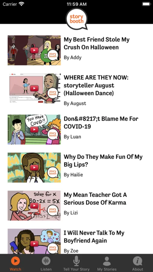 The Storybooth app brings the full Storybooth experience to your mobile device! Record and submit your story in our online studio for a chance to get animated. Track your submissions, watch all the latest stories we've animated from popular YouTubers and people just like you. Comment on videos and share your favorites with your friends.