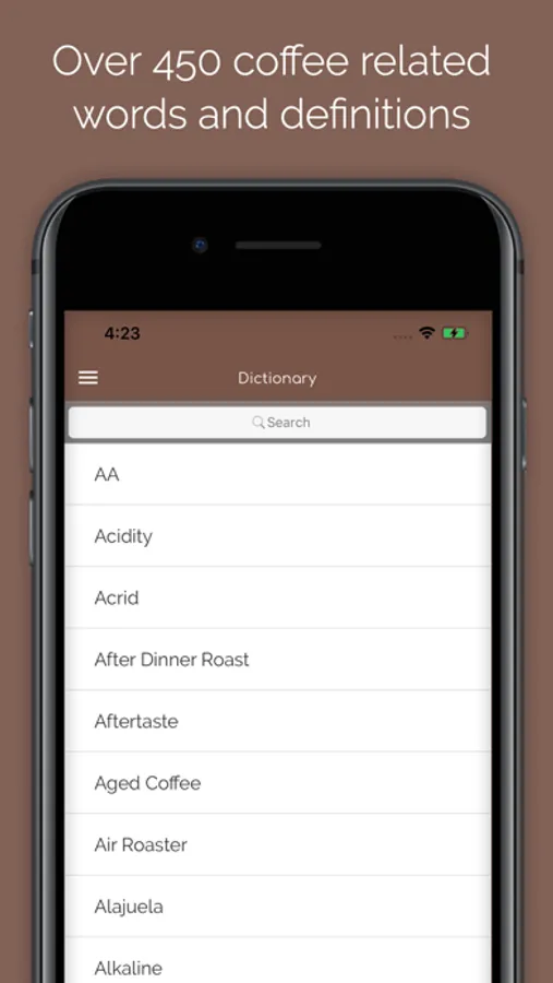 Barista Coffee Glossary is an A-Z dictionary app for all levels of baristas and coffee lovers. From people just had their first cup to connoisseurs and expert baristas.