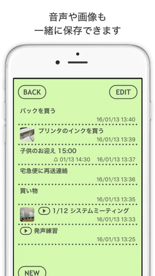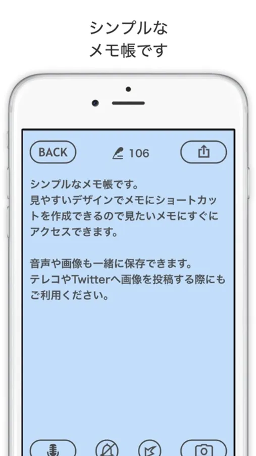 音楽の練習や大事なミーティングなどにボイスレコーダーとしてもメモ帳をご利用ください。