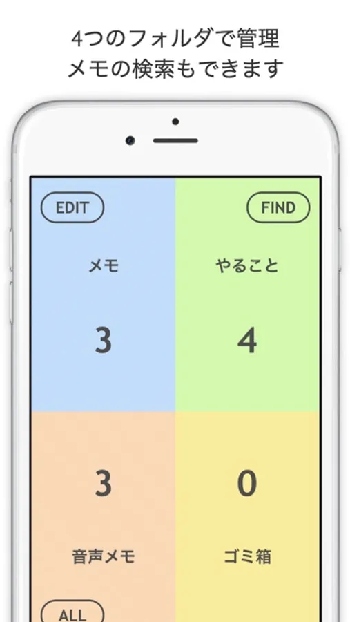 メモ帳にかいたメモは4つのフォルダに整理して管理できます。
