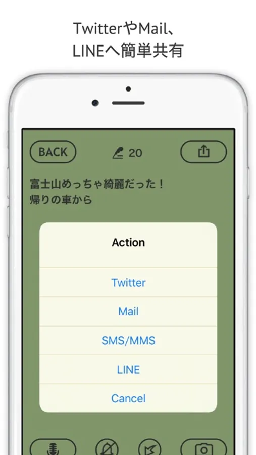 書いたメモはTwitter, Mail , Lineなどでシェアできます。