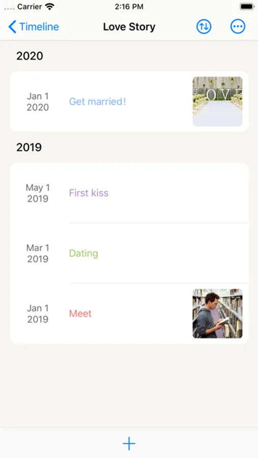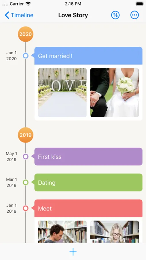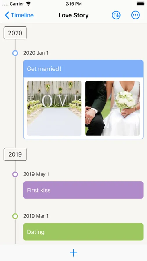 Timeline helps you capture and record the important moments in your life. You can create as many timelines as you want. Using different timeline to track different events.