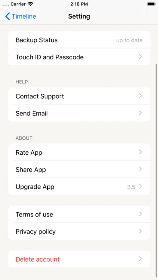 Privacy:You can setup passcode, Face ID and Touch ID within the App.