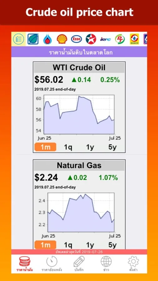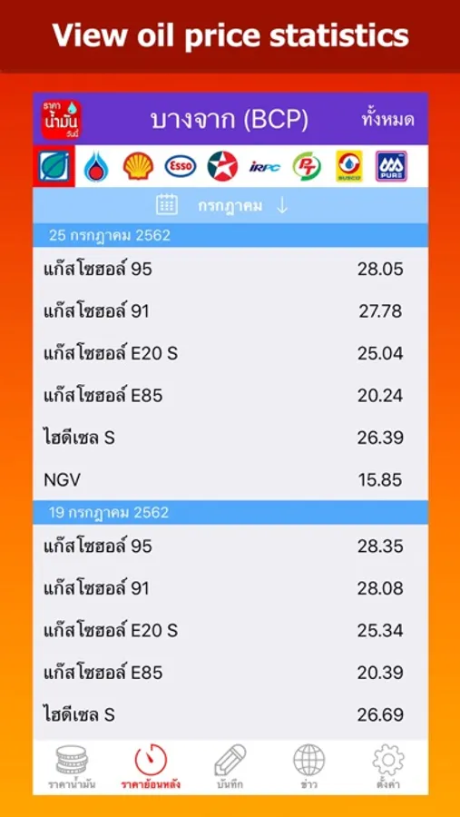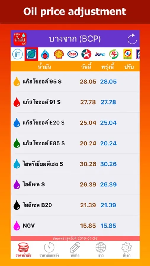 ราคาน้ำมันวันนี้ - Thai Oil Price Today, an application that will report retail prices of fuel in Bangkok Metropolitan Region. It will notify you every time any price is changed in order to make your refuel plan easier.