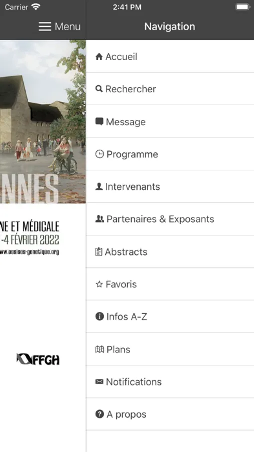 Application officielle de l'édition 2022 des Assises de Génétique Humaine et Médicale, sous l'égide de la Fédération Française de Génétique Humaine (FFGH).