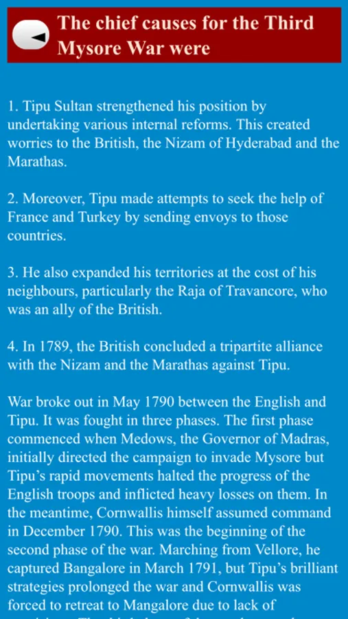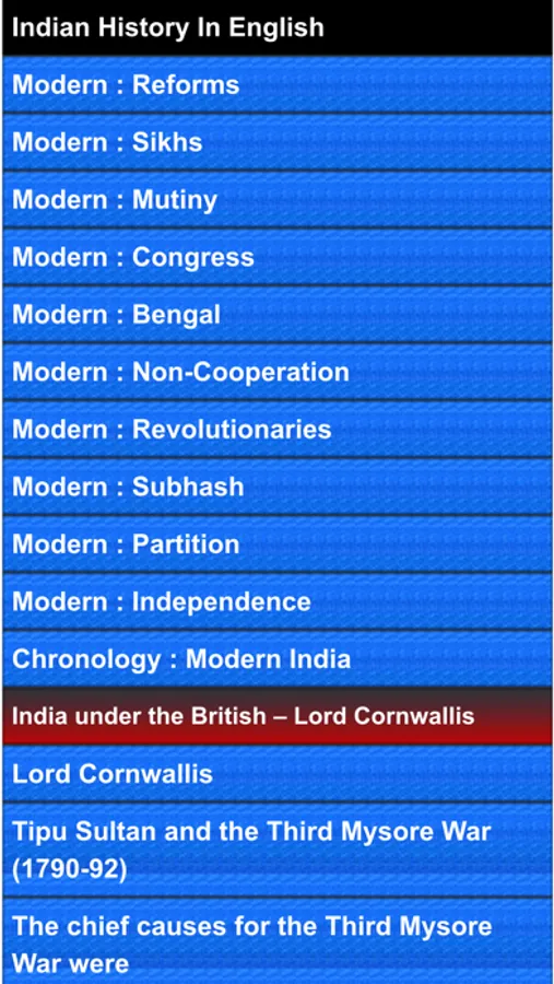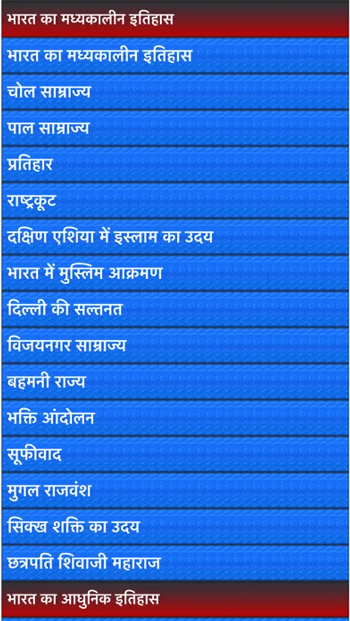 The app comprises of ages of India starting from BC to latest time period until British Rule. You will have all kinds of kingdoms, cultures, places etc covered in this app. To name a few, Ashok The King, Rajput, Mohals, Sultans, Chera, Chola, Pandya, Gupta, Gaurav, Pallava Kings etc.