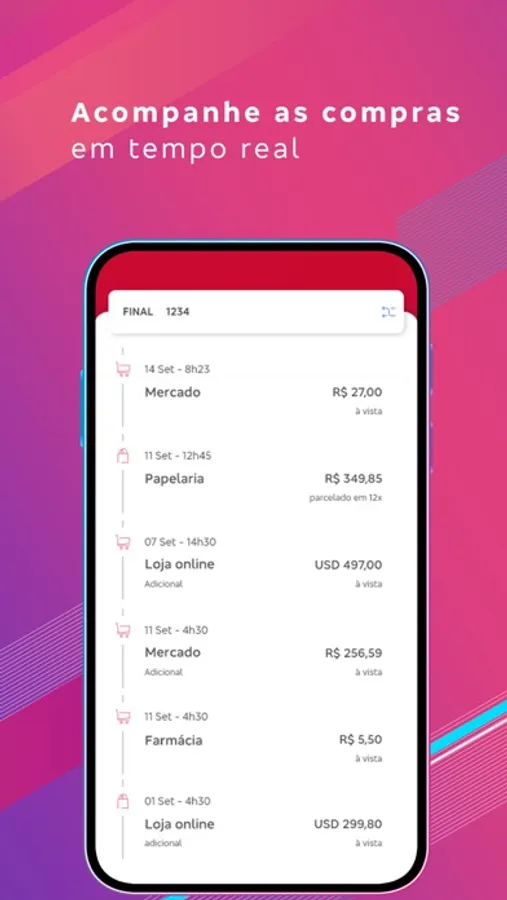 • Gráfico de consumo que permite o gerenciamento de suas compras por categoria de estabelecimento;