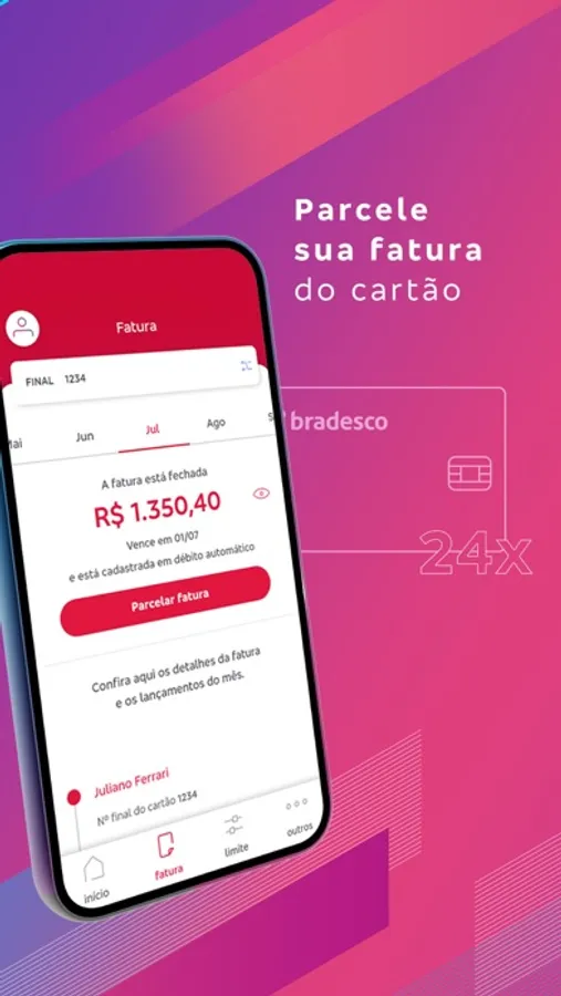 O App está disponível para cliente correntista e não correntista, titular e adicional, que seja portador de Cartão de Crédito Bradesco e/ou BradesCard vinculado ao seu CPF.