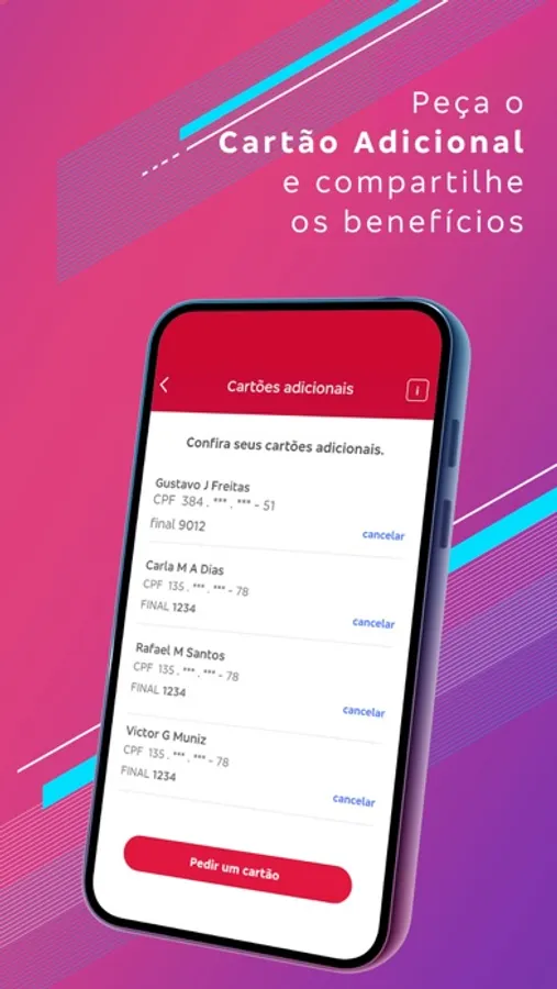 • Solicitação e cancelamento de cartão adicional¹;